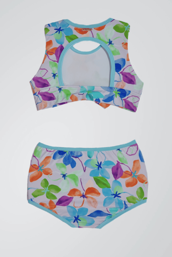O biquíni Jade é a escolha perfeita para um dia de diversão sob o sol, unindo conforto e estilo! O biquíni é composto por um top de alças largas com um recorte em formato de gota nas costas e um nó frontal que adiciona um toque moderno e ajustável, garantindo um caimento seguro. A calcinha de cintura alta, estilo "hot pants", oferece maior conforto e cobertura, permitindo que as meninas se movimentem livremente, enquanto brincam na água ou na areia.