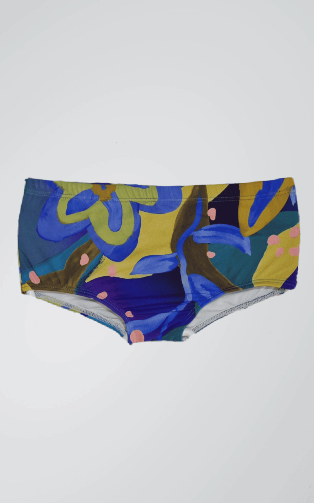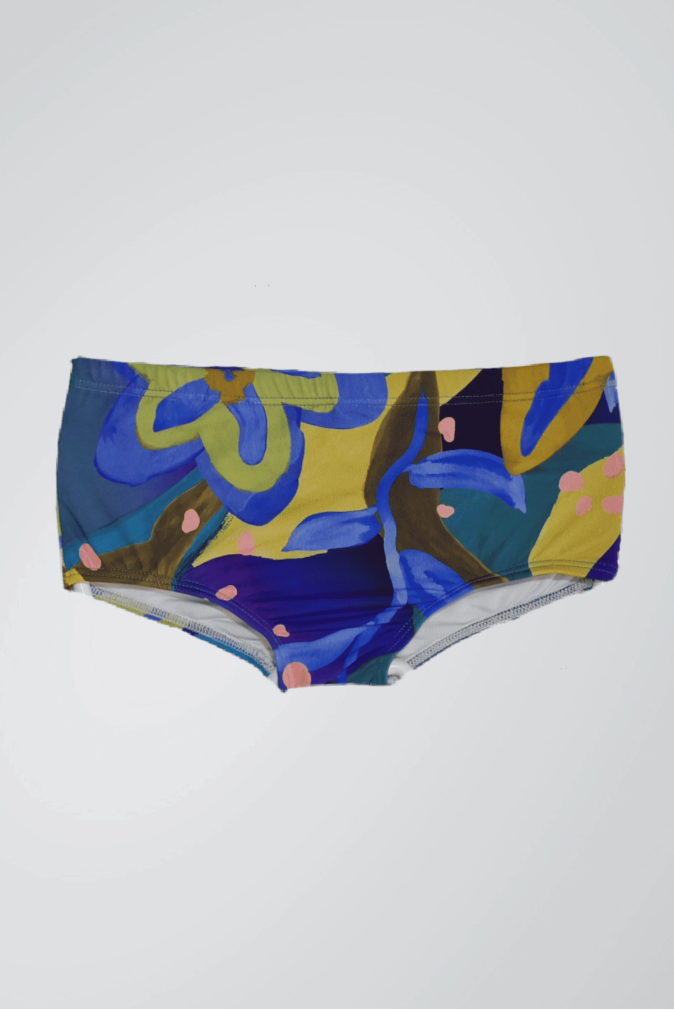 Flores gigantes, nas cores do sol de verão (amarelo ouro) e do mar profundo (azul royal), se misturam com folhagens verdes e misteriosas. Olhe de perto! Os pontinhos cor-de-rosa, parecem confetes espalhadas pela natureza! A estampa Flores do Sol é perfeita para pequenos aventureiros que adoram descobrir um mundo de cores à beira mar.